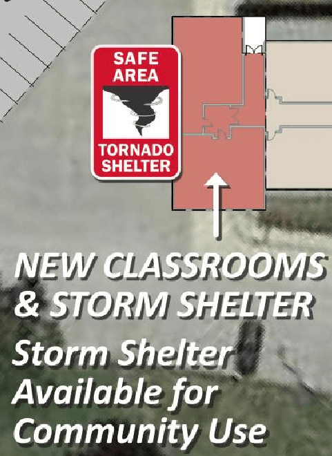 Pricing for these two classrooms, budgeted at $850,000 ($425/sf)1, is higher than the other proposed projects because of their additional role as a combined storm shelter.